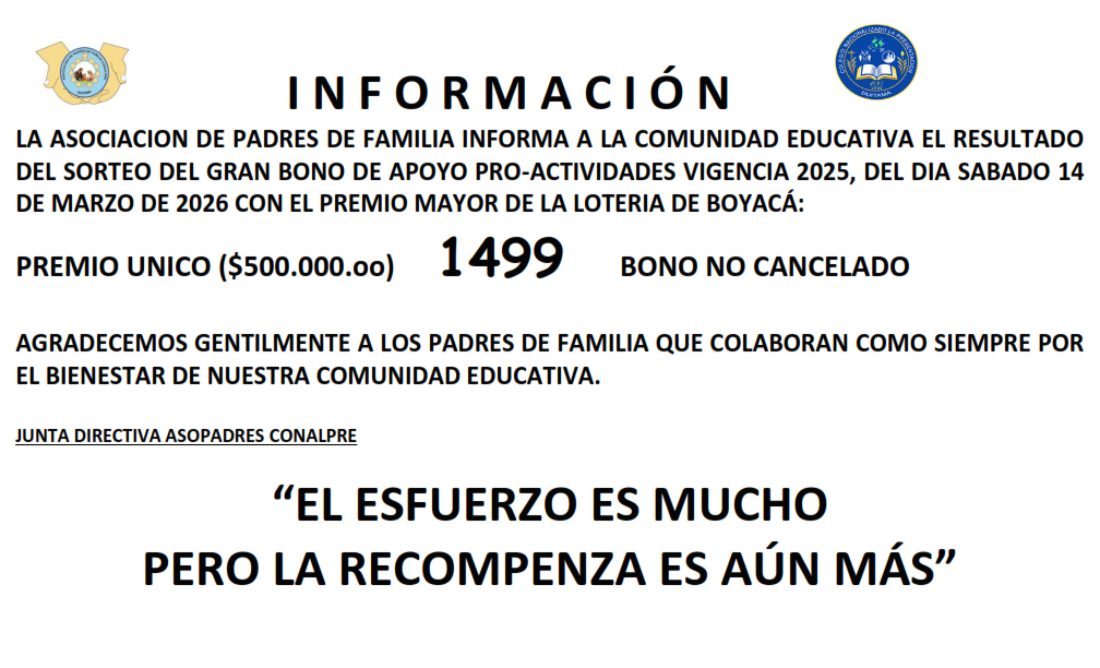 Para los Padres de Familia que no han reclamado los siguientes documentos, se están entregando en el Colegio en horas de la mañana para que los cancelen en FINANCIERA COMULTRASAN durante el mes de Noviembre: